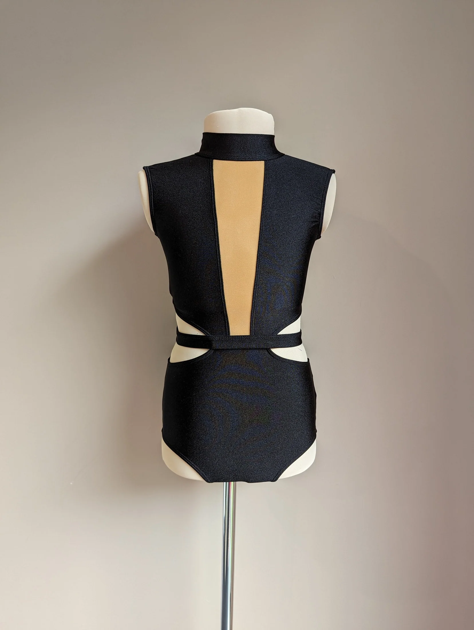 Our debut piece, the Rory leotard, features waist cutouts, a front mesh V, a detachable waist belt, and is fully lined. Available in sizes 6-8 years to Adult Large.